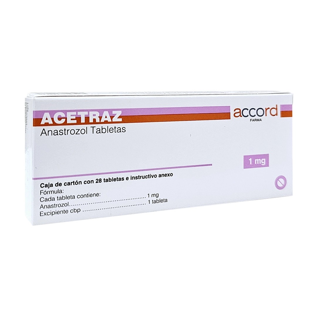 ACETRAZ de Accord se presenta en 1 mg caja 28 tabletas de 1 mg, con 28 unidades por paquete. Contiene como ingrediente activo Anastrozol y pertenece a la categoría oncológico.